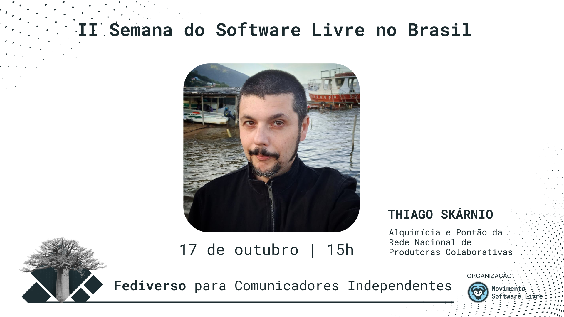 Online - Semana.softwarelivre.tec.br , BrazilA proposta da oficina de Fediverso para Comunicadores Independentes é apresentar o conceito e história do Fediverso, bem como suas principais tecnologias e plataformas e a sua utilidade na produção de Coberturas Colaborativas de pautas e eventos. Após o período de teoria, os participantes da oficina serão convidados à criarem perfis nas redes federadas. Sexta,… Continue a ler »Oficina de Fediverso para Comunicadores Independentes